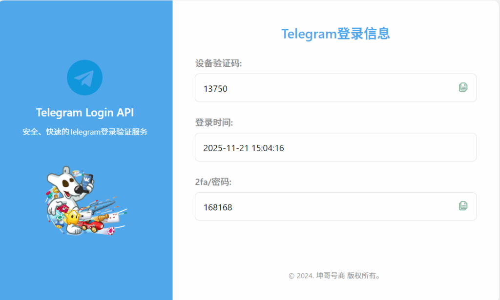 购买的卡密格式为:+66817200617|https://tgapi.kuxlz.com/kunge/f10af3d0-a650-4083-92b2-de7afacc7151/GetHTML